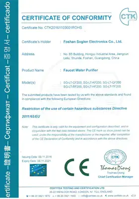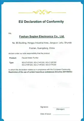 Soglen passed the standard international quality, through the ISO certification, manufacturing strictly follow the European Union standards, Using high quality raw materials, through strict independent testing, is committed to providing customers with high water quality purification products.